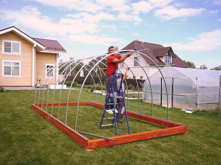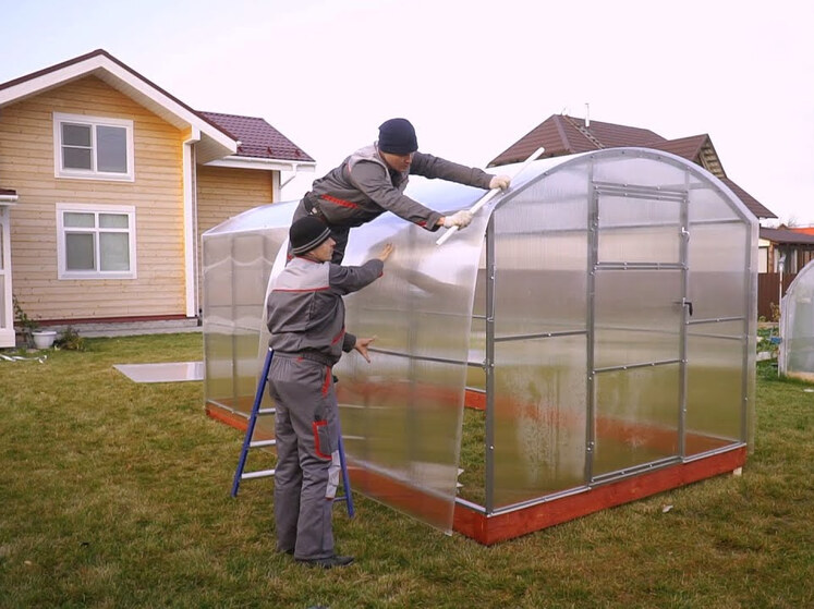 Assembling a greenhouse with a foundation by the company's specialists is high-quality, with a guarantee.
