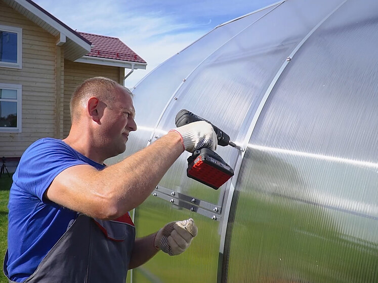 2) Securely presses the polycarbonate along the entire length of the greenhouse arc with a galvanized tape. Your polycarbonate will not fly around the neighbors' garden;