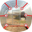 Обратите внимание! Торцы теплицы также выполнены из двойной дуги-фермы, что придает теплице более основательный и красивый вид.