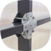 Надежное крепление «краб-системой» обеспечивает плотное прилегание направляющих к поликарбонату.